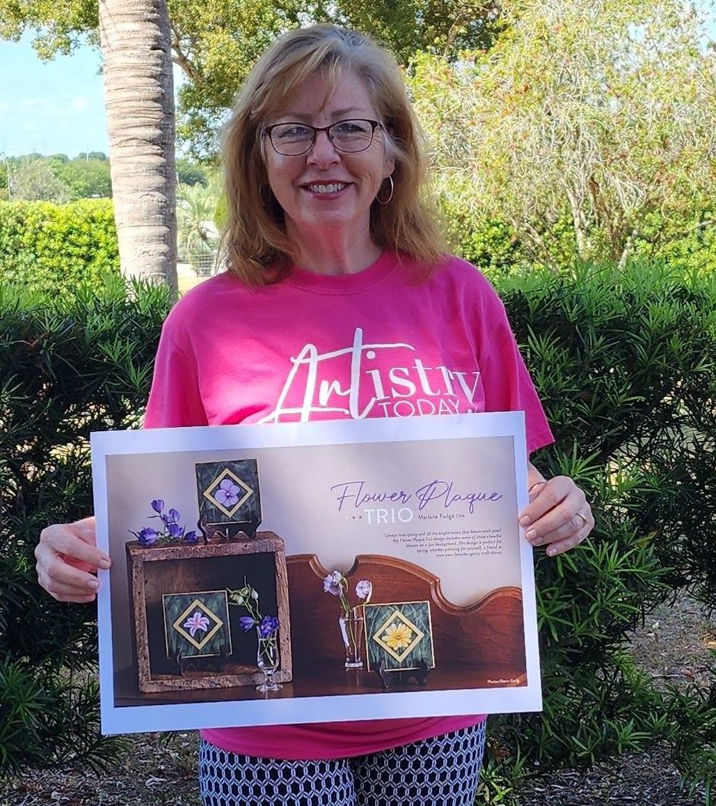 I was born and raised in Eastern Pennsylvania where we raised two wonderful daughters. In the beginning of 2023, my husband and I relocated to sunny Florida to build our dream home. Having a mom who loved to paint and do all things crafty, she passed that love along to me. When our girls were little, I always tried to find fun activities to do with them. One day, I was shopping in our local craft store and picked up a painting magazine with an adorable painted Halloween wreath. I bought the magazine and all the paints and supplies. It brought me such joy that I kept looking for more designs to paint and never stopped! Eventually, as I grew more confident in my painting, I started to create my own designs. My first design was published in 2015. Since that time, I have taught both locally and at national conventions, and published many more designs for magazines and e-zines. I am very proud to be a DecoArt Helping Artist as well as a Dynasty Brand Specialist for Dynasty Brush. One of my greatest personal achievements was earning my CDA and my Master Stroke certification from the Society of Decorative Painters. Having recently moved south, I am looking forward to setting up my brand-new studio in our new home and creating many new designs.